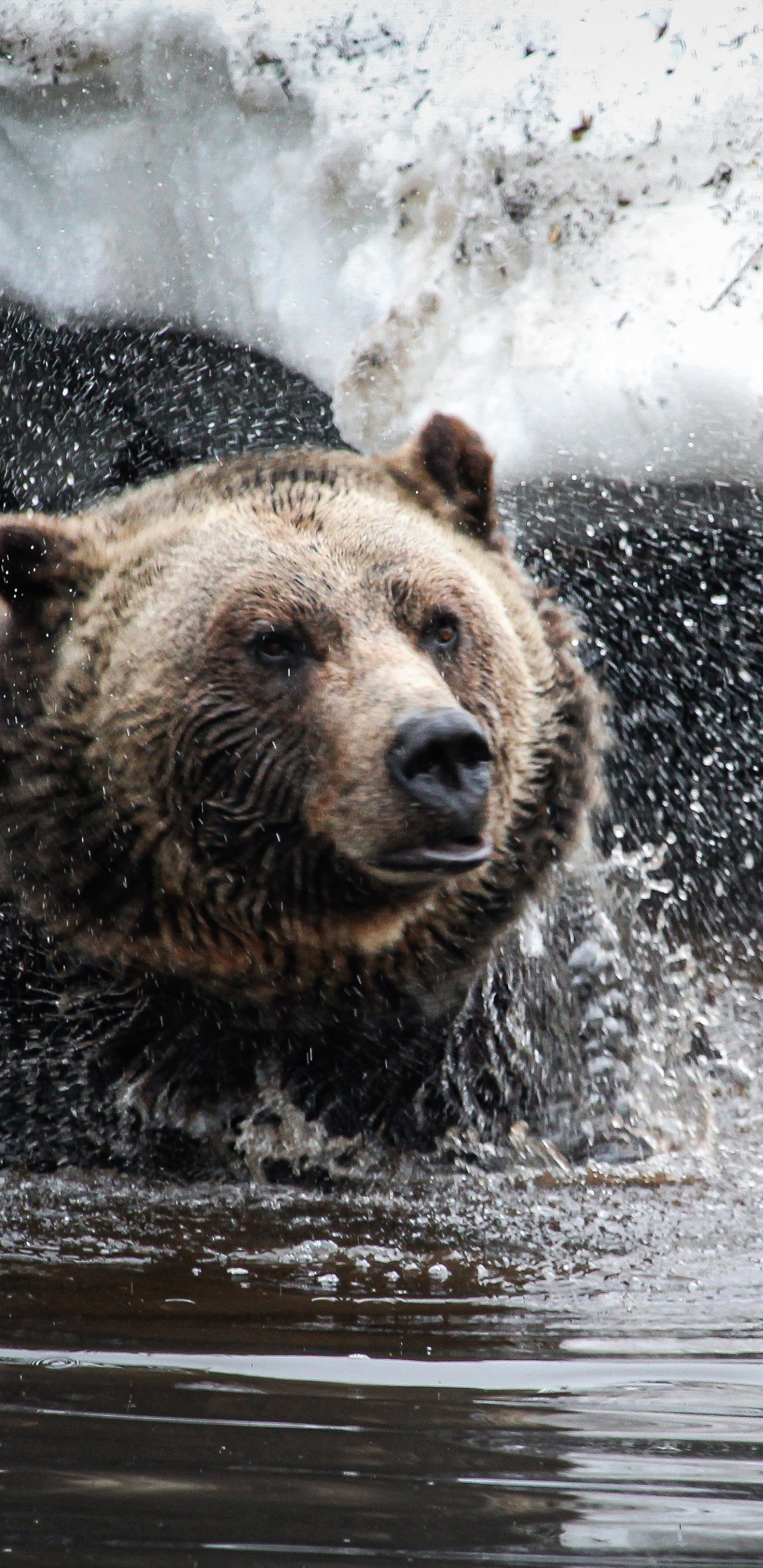Обои: медведь, водные процедры - 1440x2960