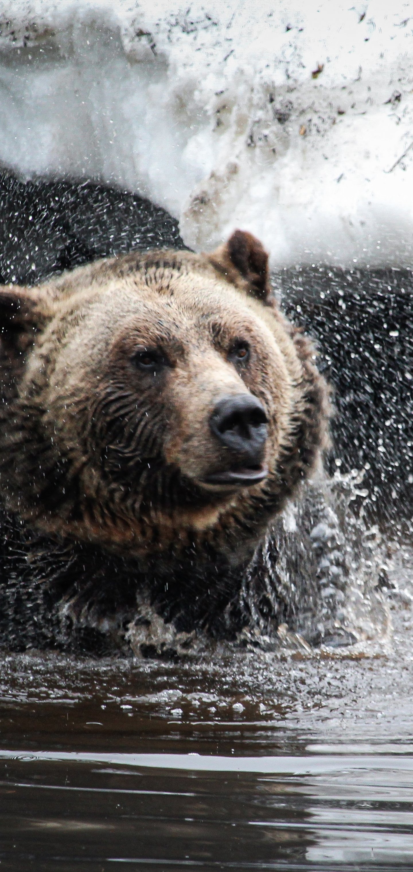 Обои: медведь, водные процедры - 1440x3040