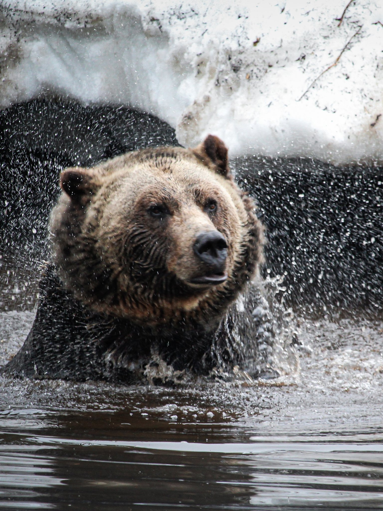 Обои: медведь, водные процедры - 1536x2048