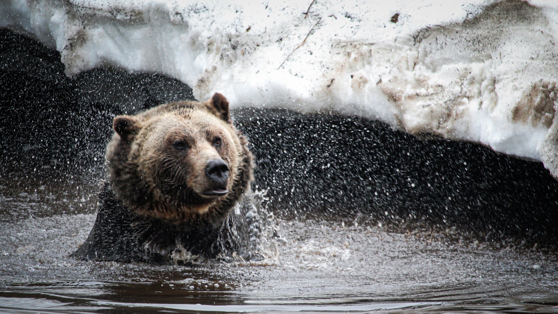 Обои: медведь, водные процедры - 1920x1080