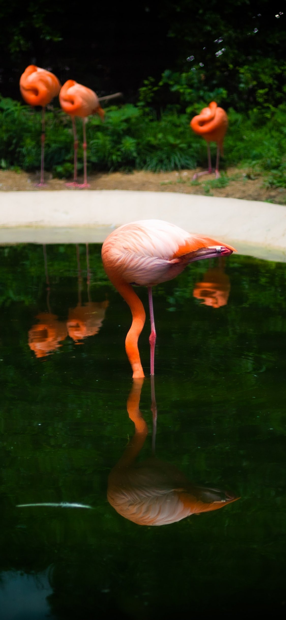 Обои: пруд, фламинго - 1125x2436