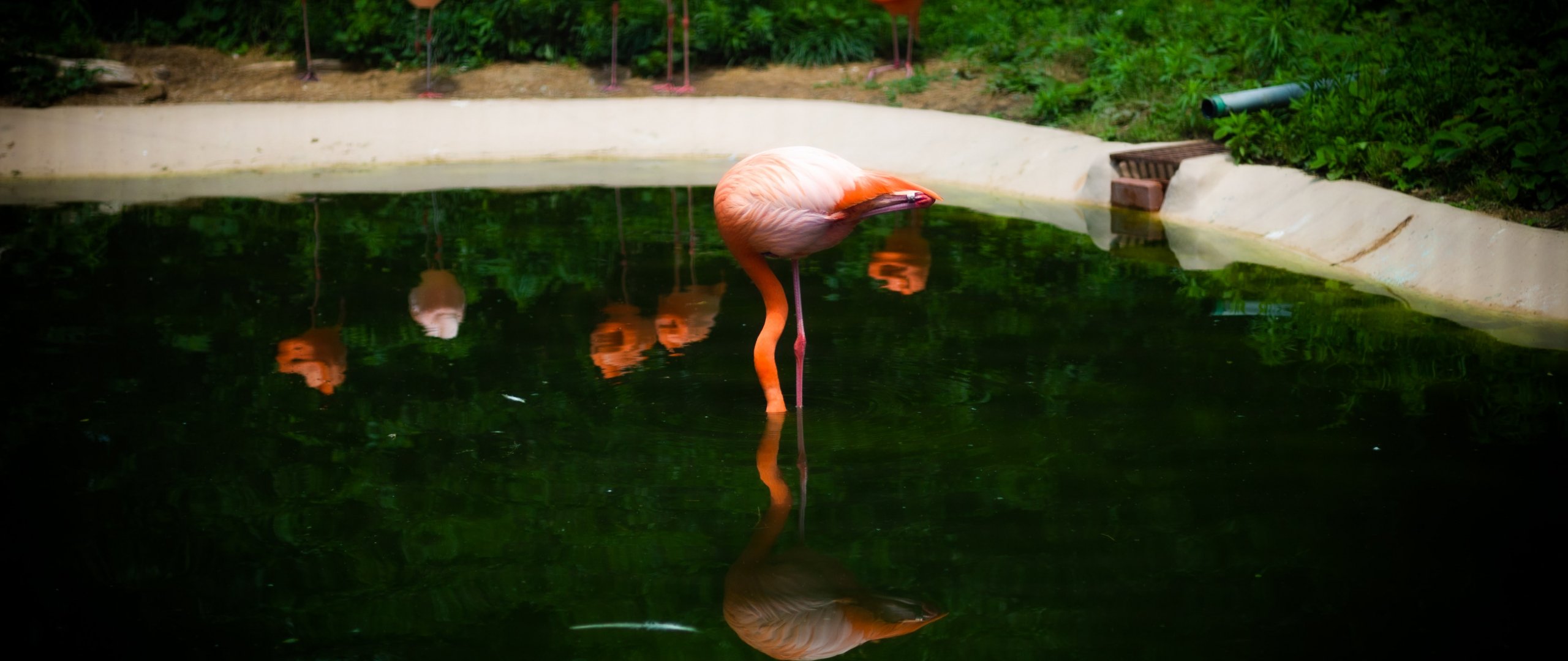 Обои: пруд, фламинго - 2560x1080