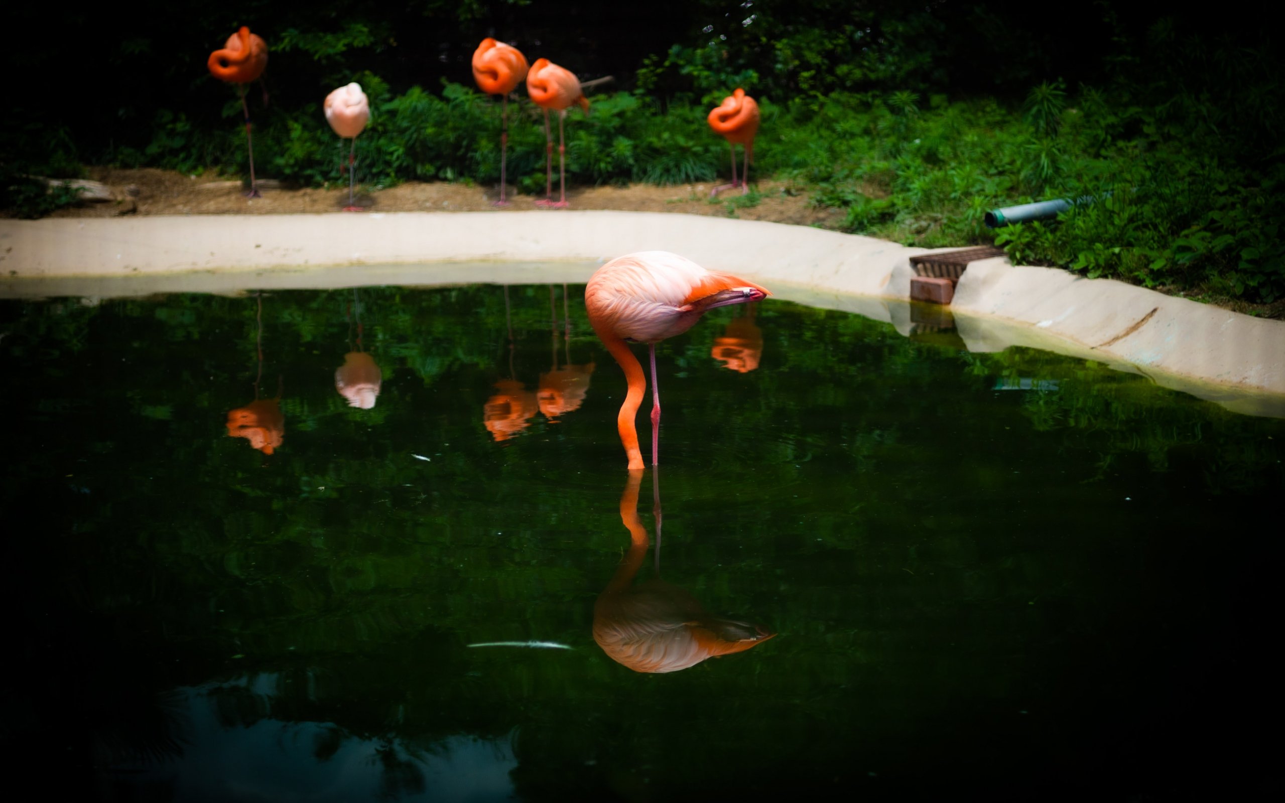 Обои: пруд, фламинго - 2560x1600