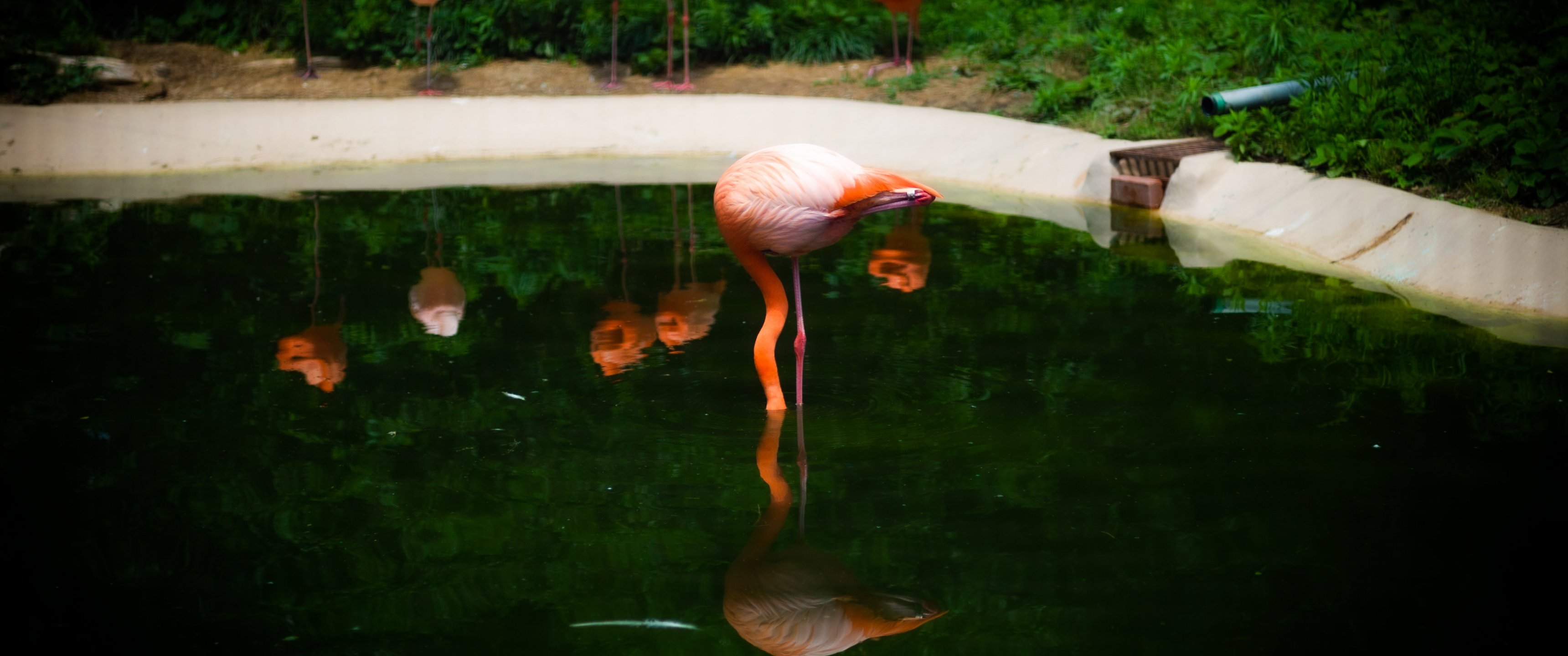 Обои: пруд, фламинго - 3440x1440