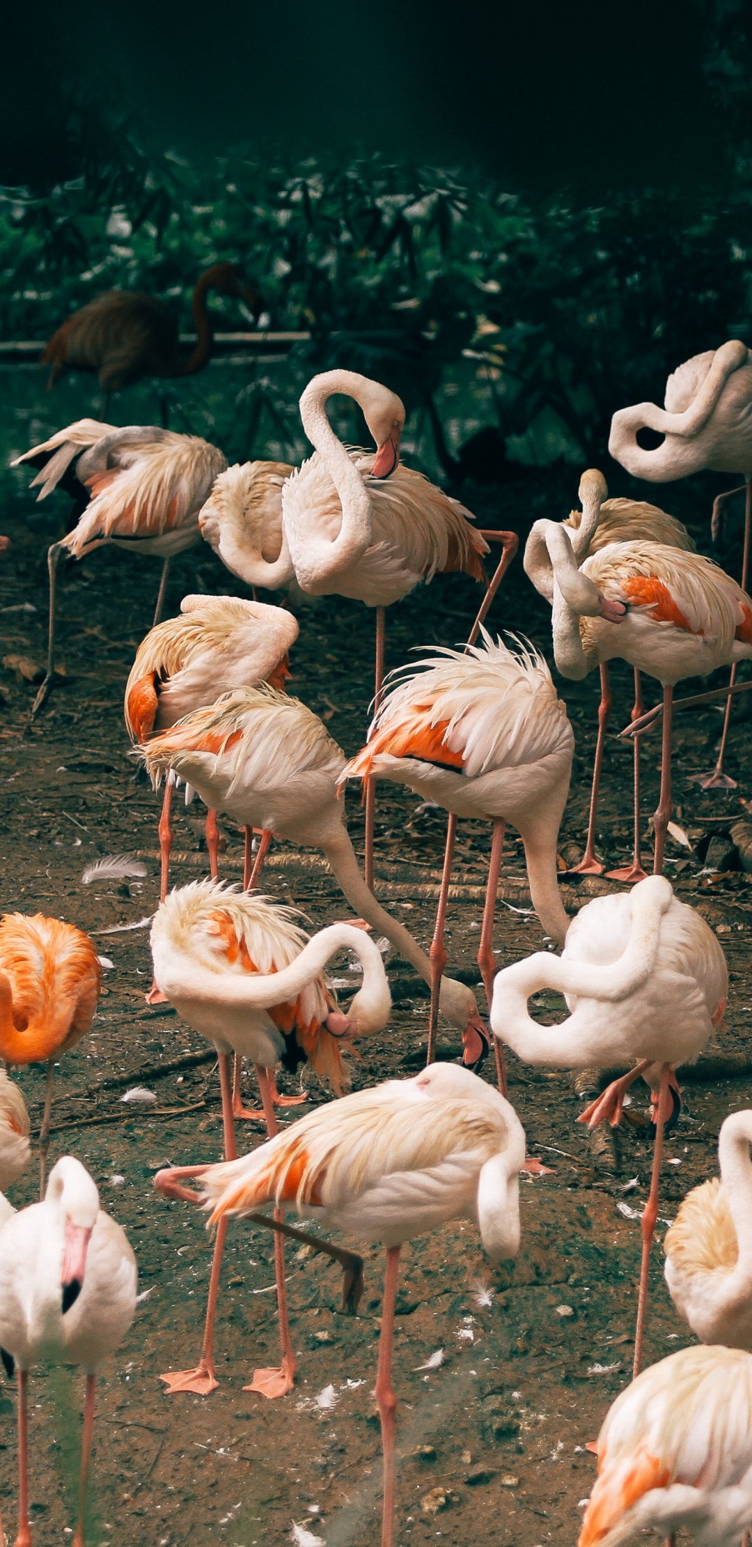Обои: стая фламинго, зоопарк - 1080x2220