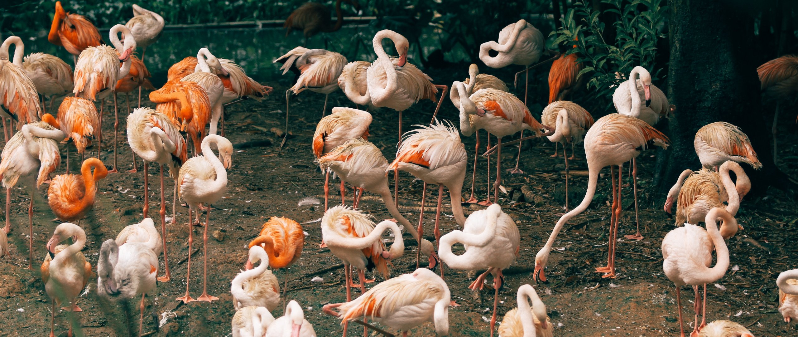 Обои: стая фламинго, зоопарк - 2560x1080