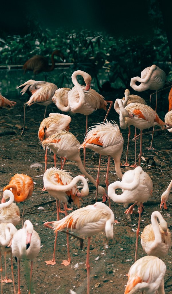 Обои: стая фламинго, зоопарк - 600x1024