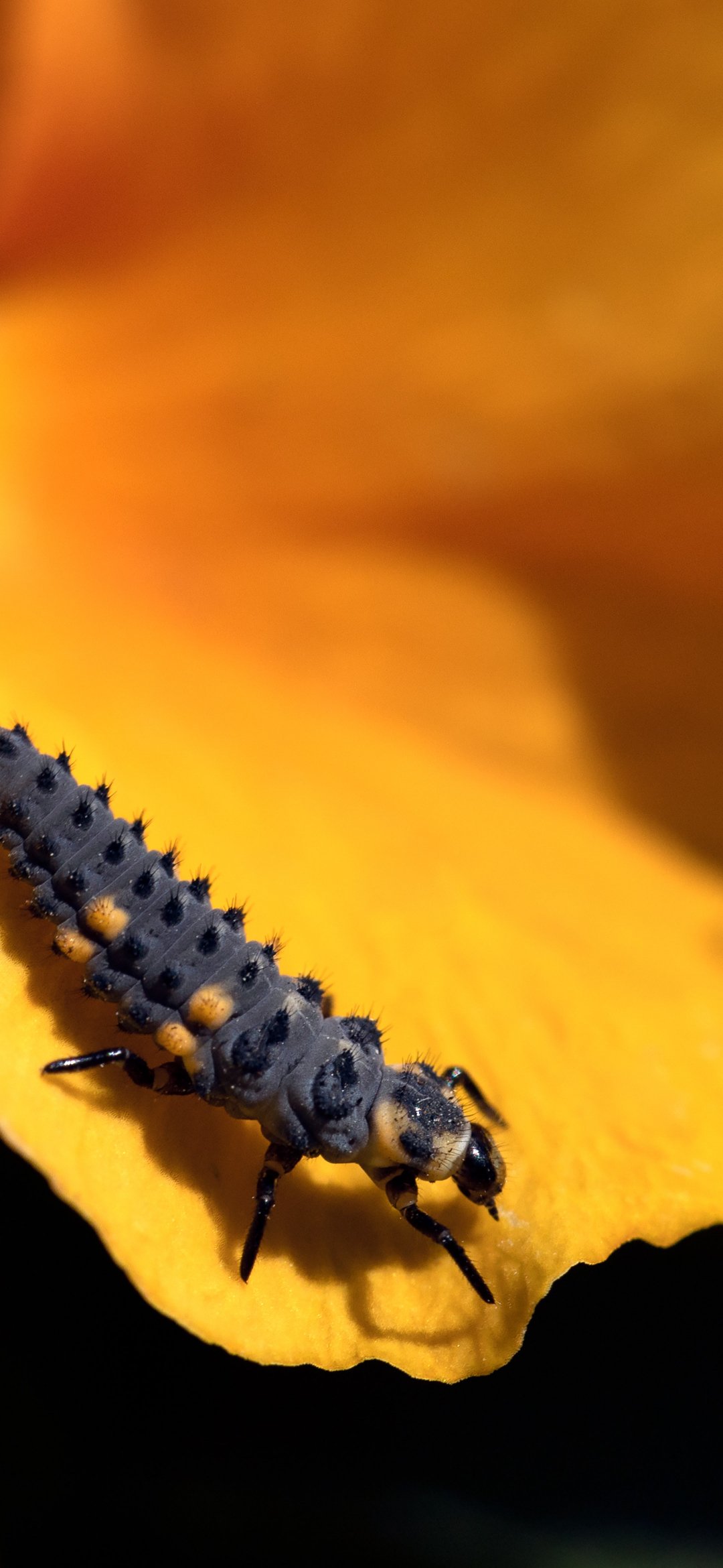 Обои: большая гусеница, цветок - 1080x2340