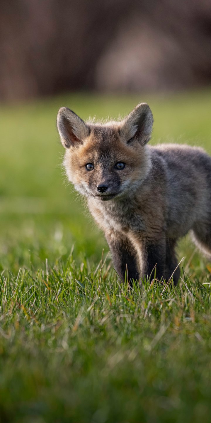 Обои: рыжый лисенок, дикое животное - 720x1440