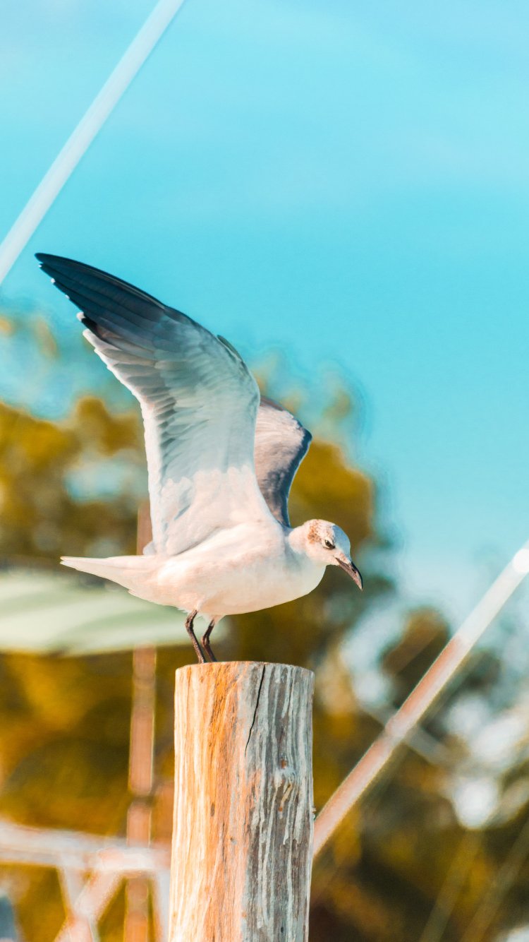 Обои: чайка, на столбе - 750x1334