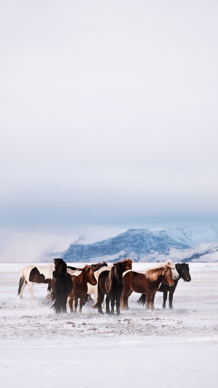 Обои: Вик, Исландия, табун - 720x1280