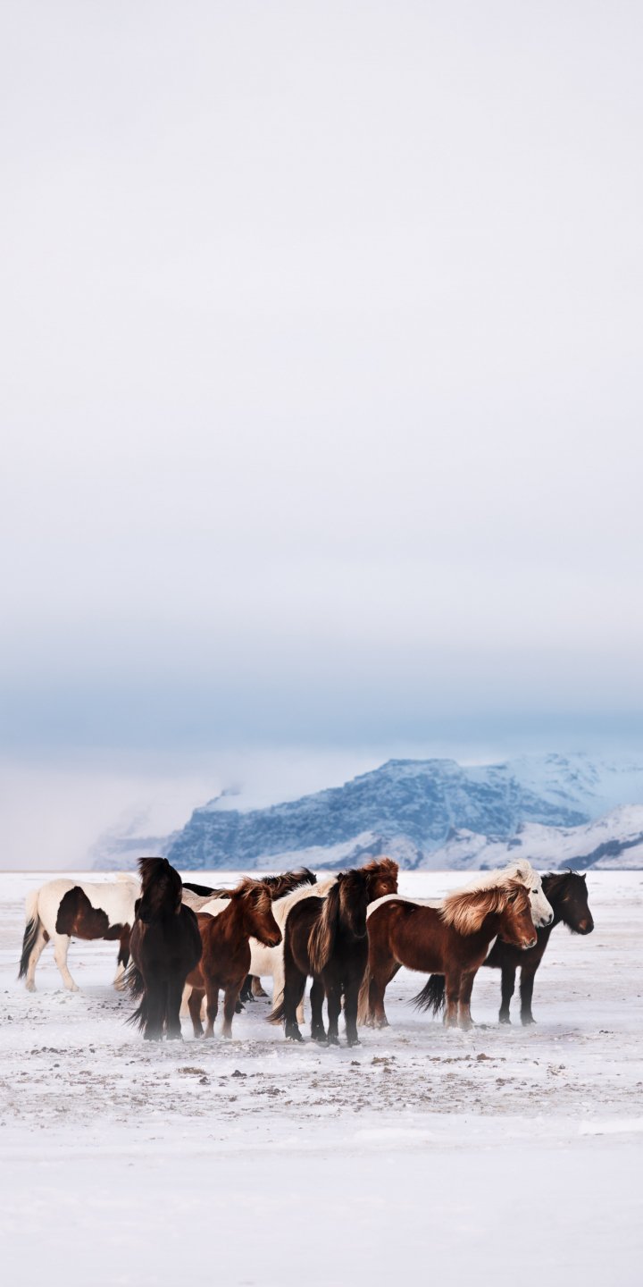 Обои: Вик, Исландия, табун - 720x1440