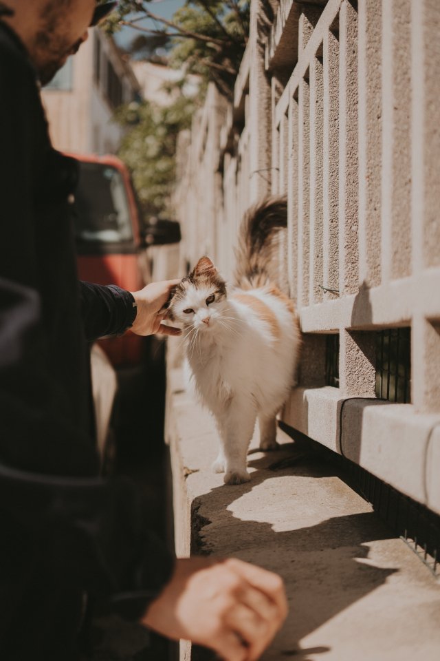 Обои: Франция, уличная кошка - 640x960