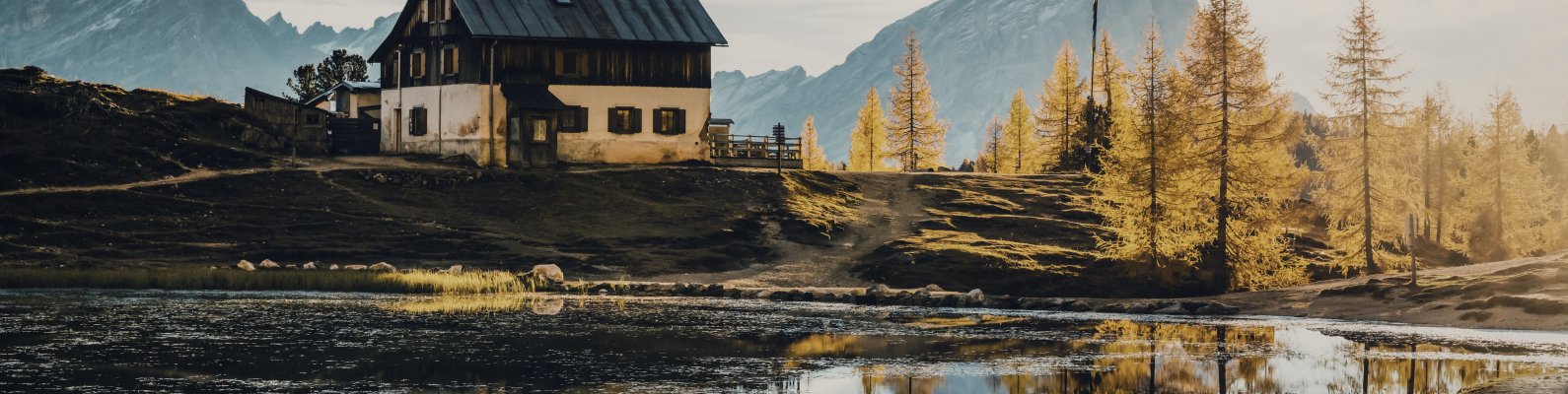 Обои: дом у гор, место уединения - 1590x400