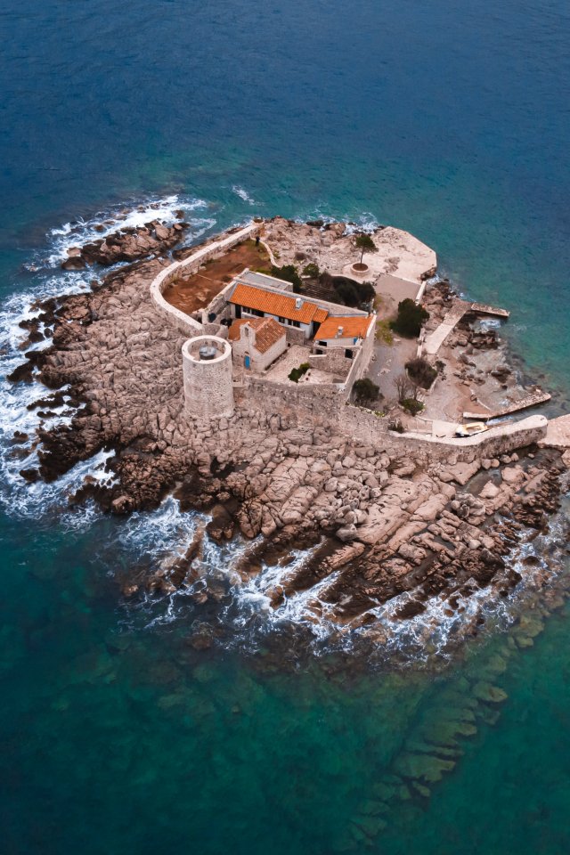 остров, вид с высоты птичьего полета, Которский залив
