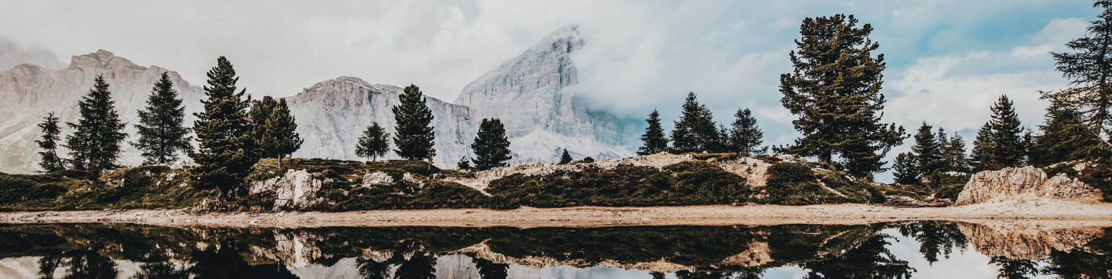Обои: горы, отражение в озере - 1590x400