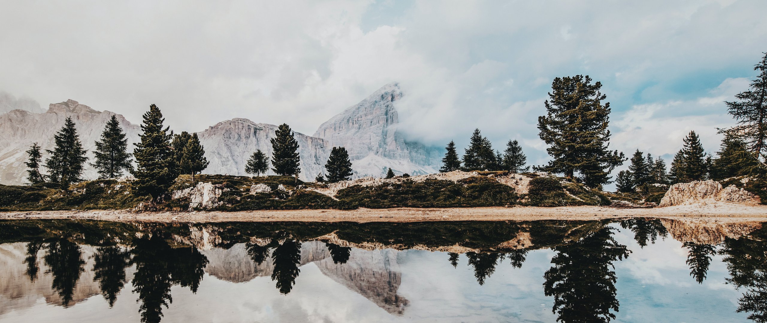 Обои: горы, отражение в озере - 2560x1080