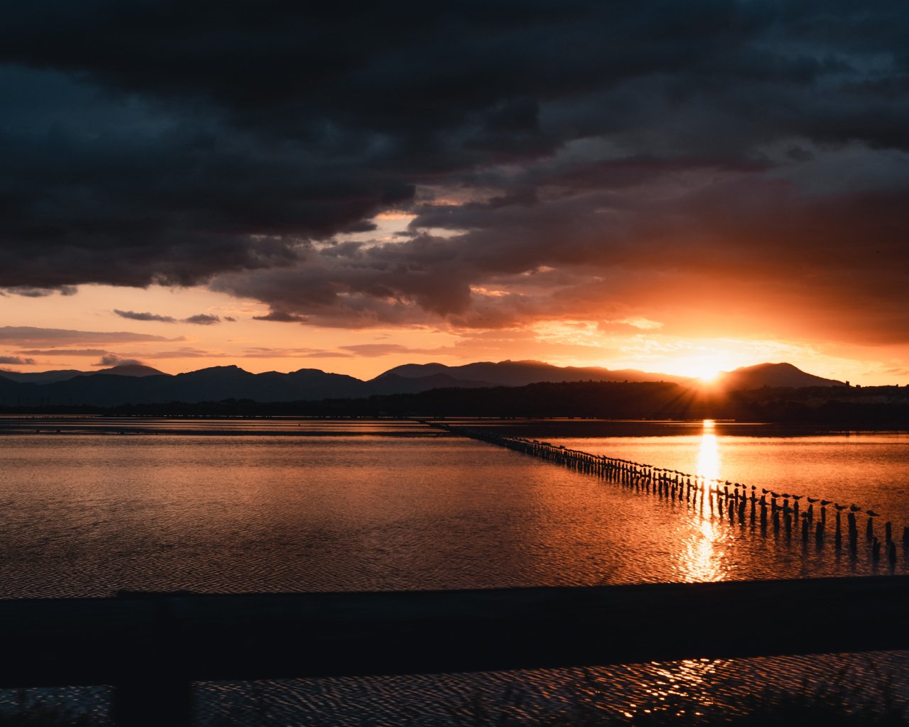 Обои: закат, море, пирс - 1280x1024