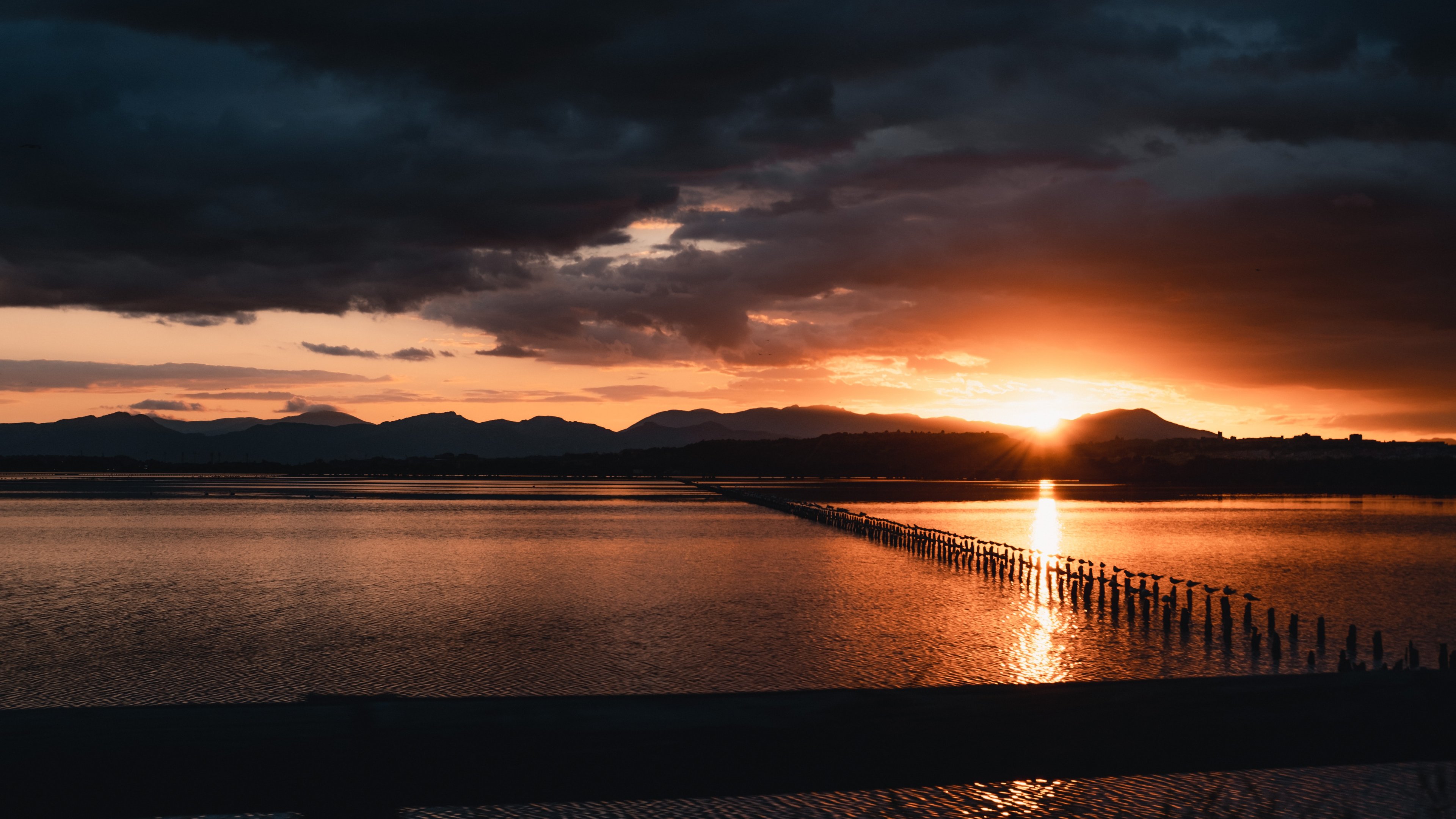 Обои: закат, море, пирс - 3840x2160