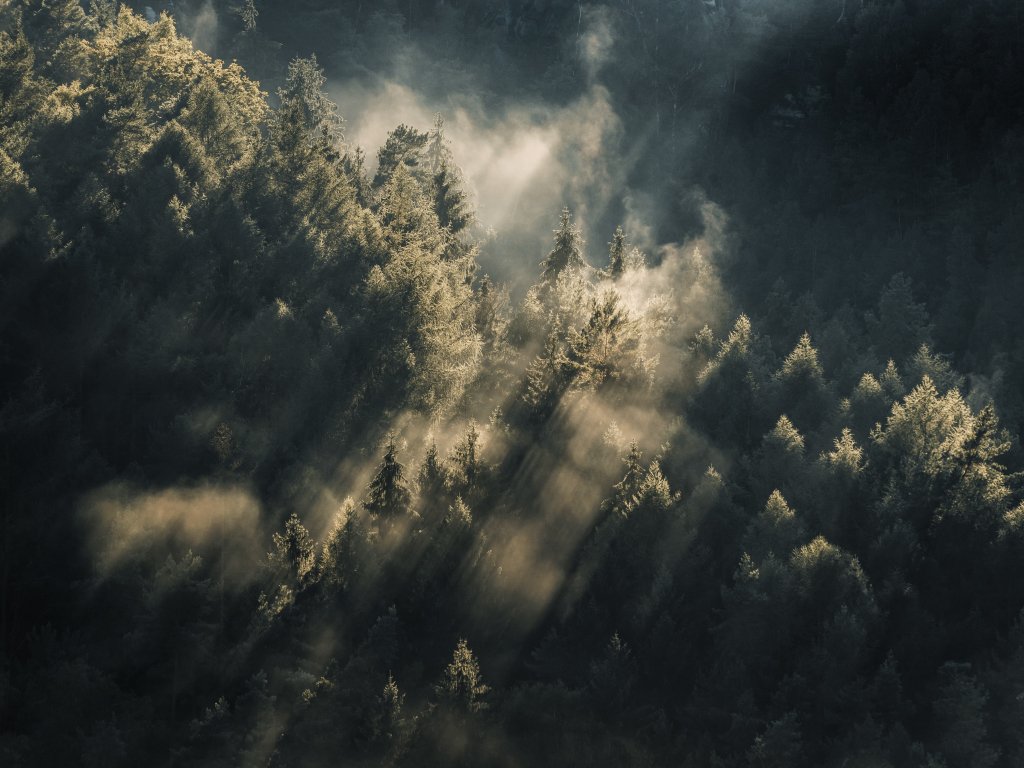 Обои: лес, в лучах солнца - 1024x768