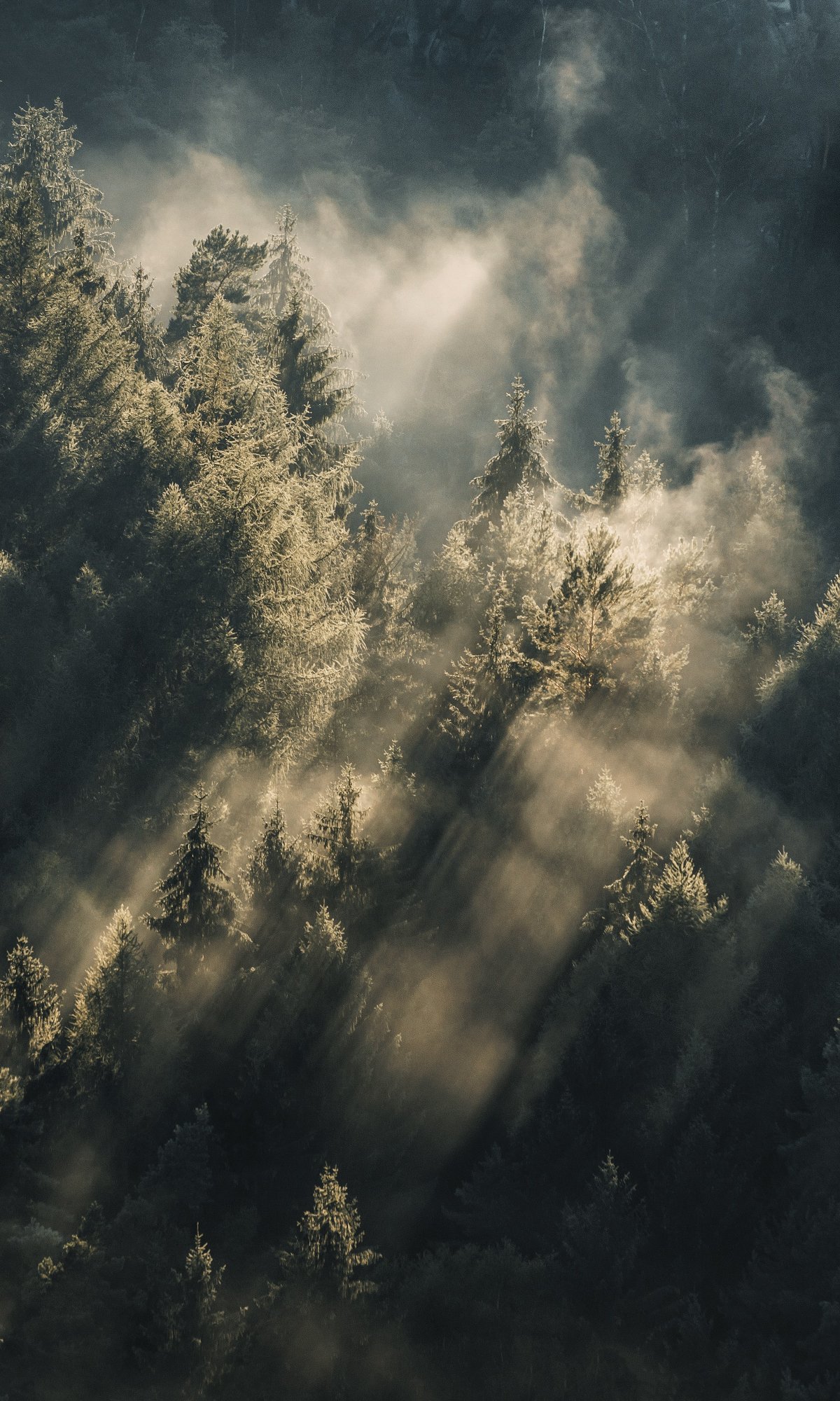 Обои: лес, в лучах солнца - 1200x2000