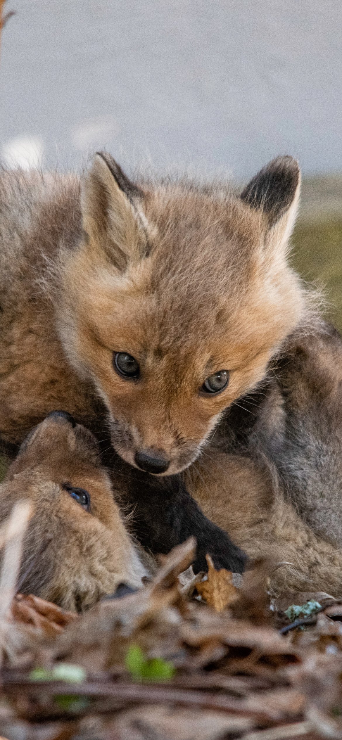 Обои: маленькие лисята, дикие животные - 1170x2532