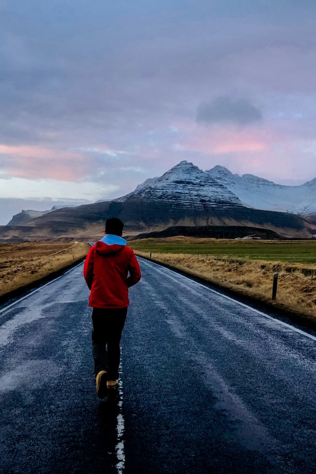 Обои: горы, пешком по дороге - 640x960