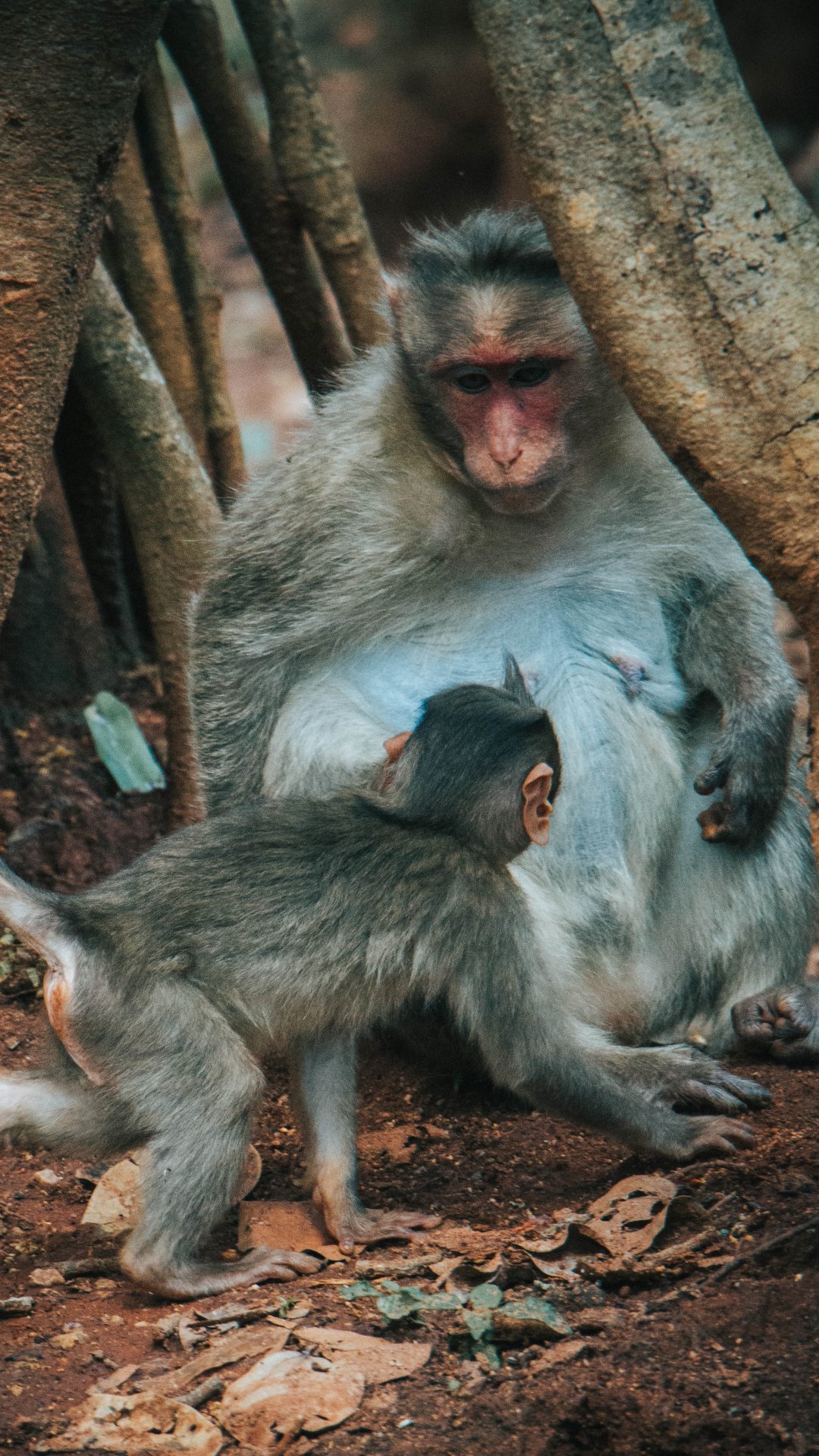 Обои: обезьяна, мама и малыш - 1080x1920