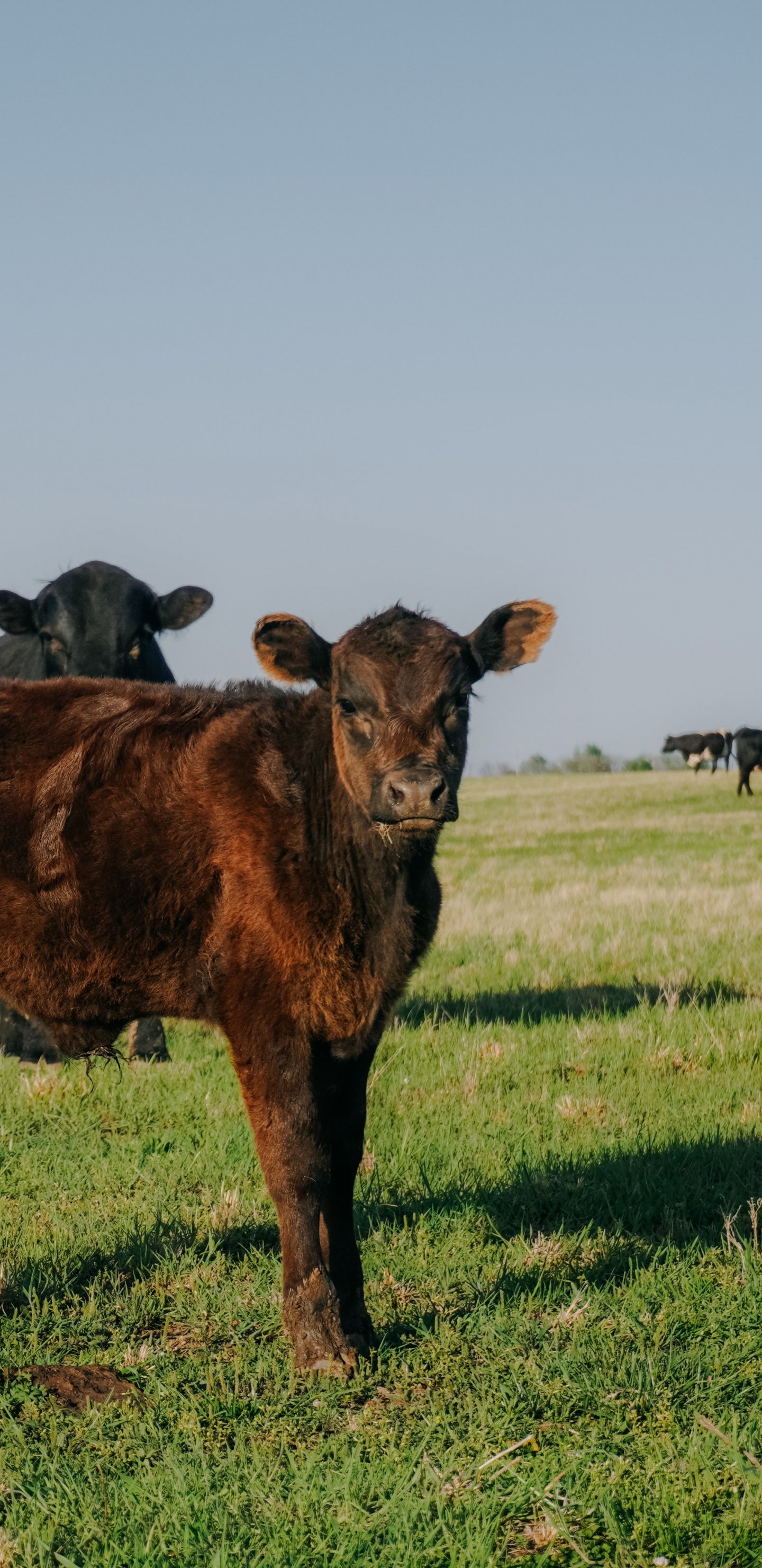 Обои: телята, на пастбище - 1440x2960