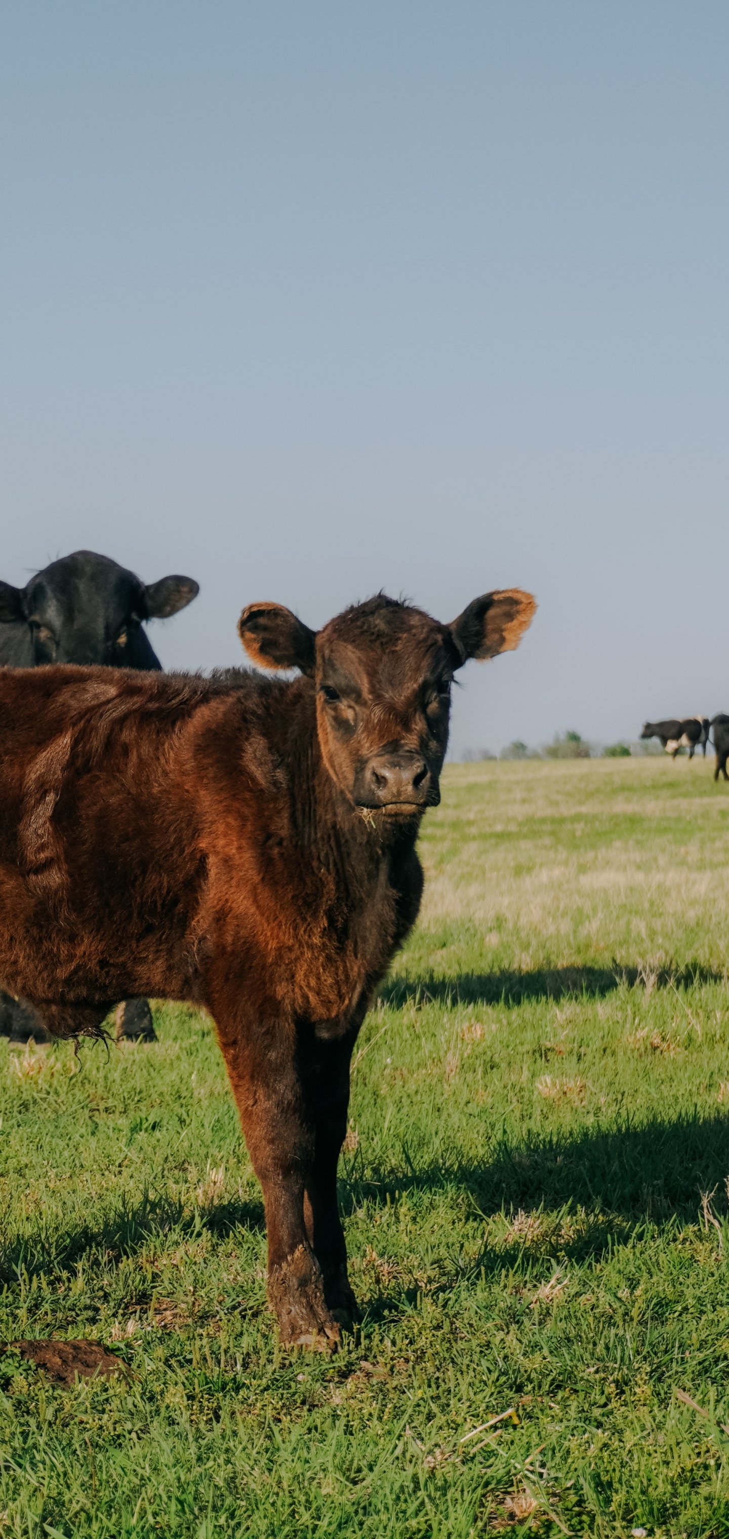 Обои: телята, на пастбище - 1440x3040