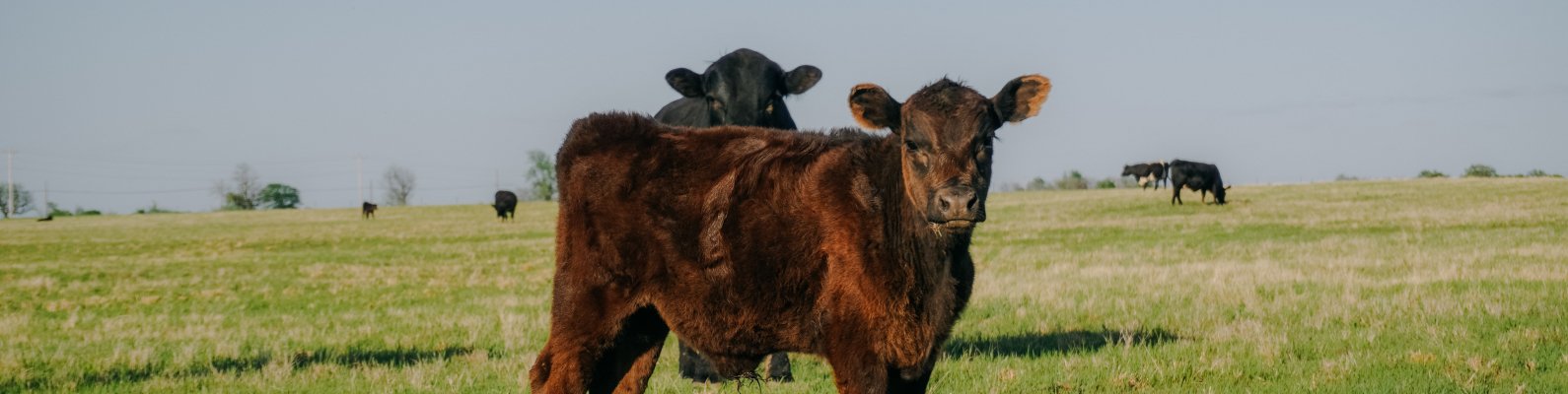 Обои: телята, на пастбище - 1590x400