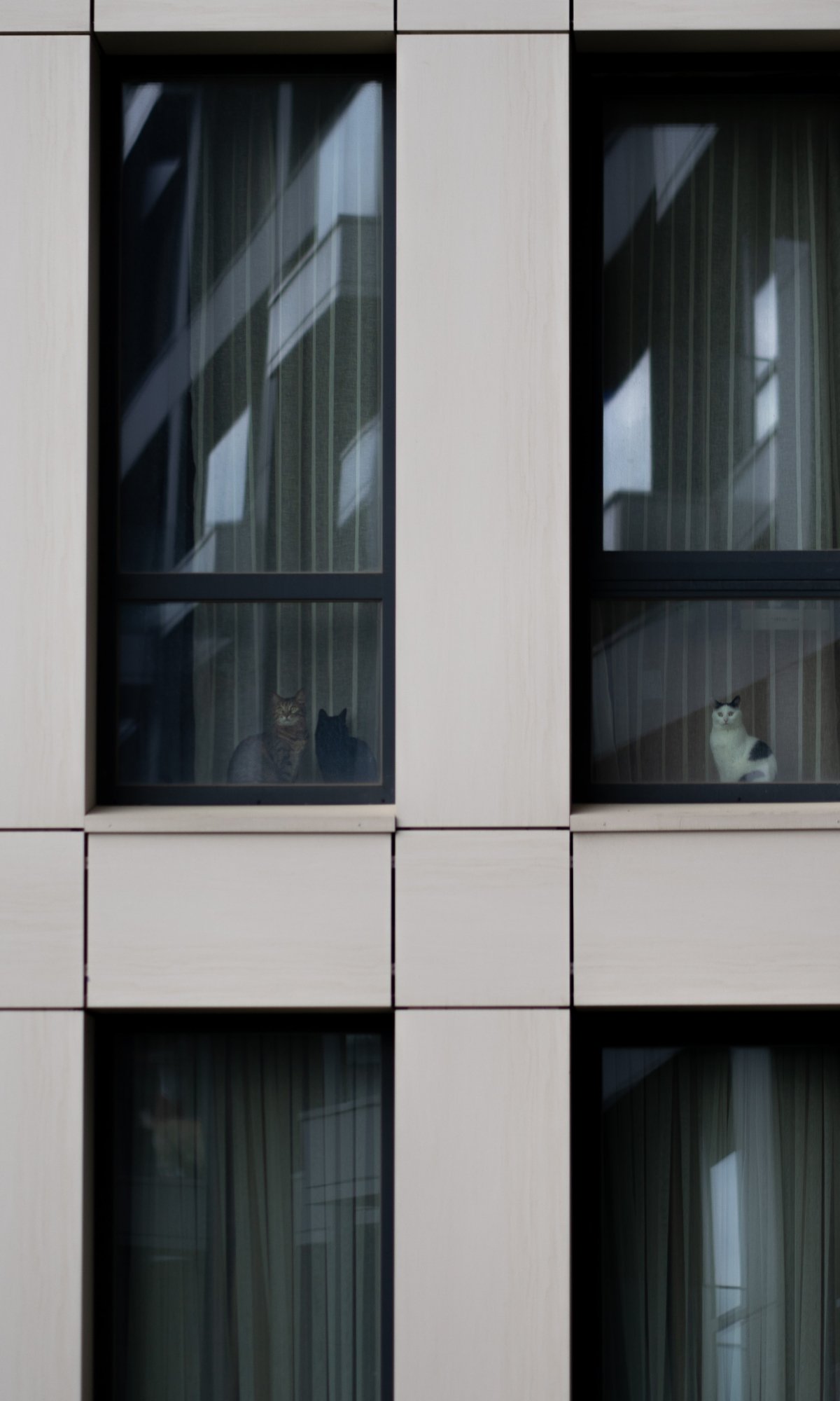 Обои: серый дом, кошки в окошках - 1200x2000