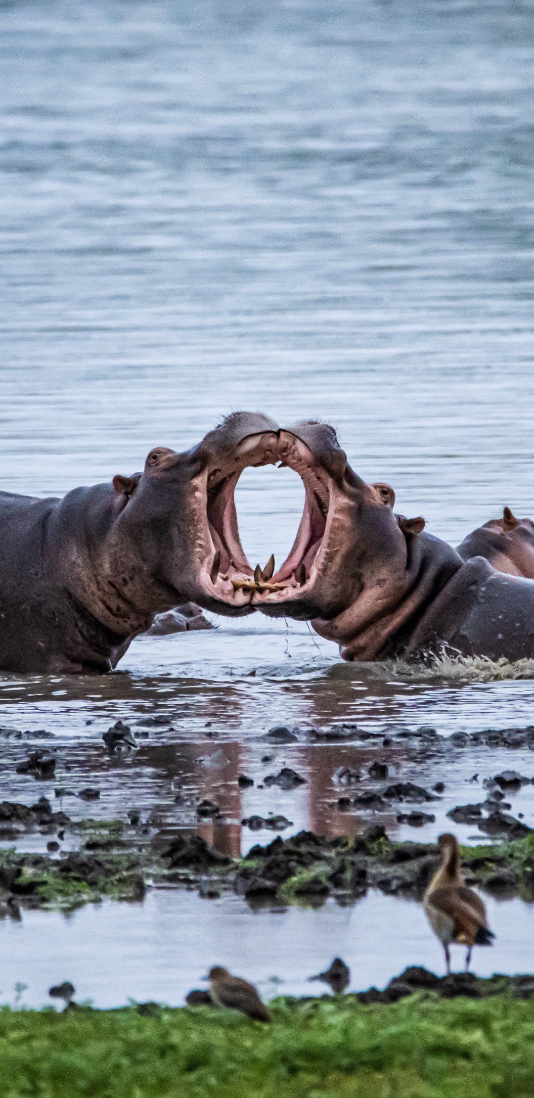 Обои: Зимбабве, бегемоты - 1080x2220