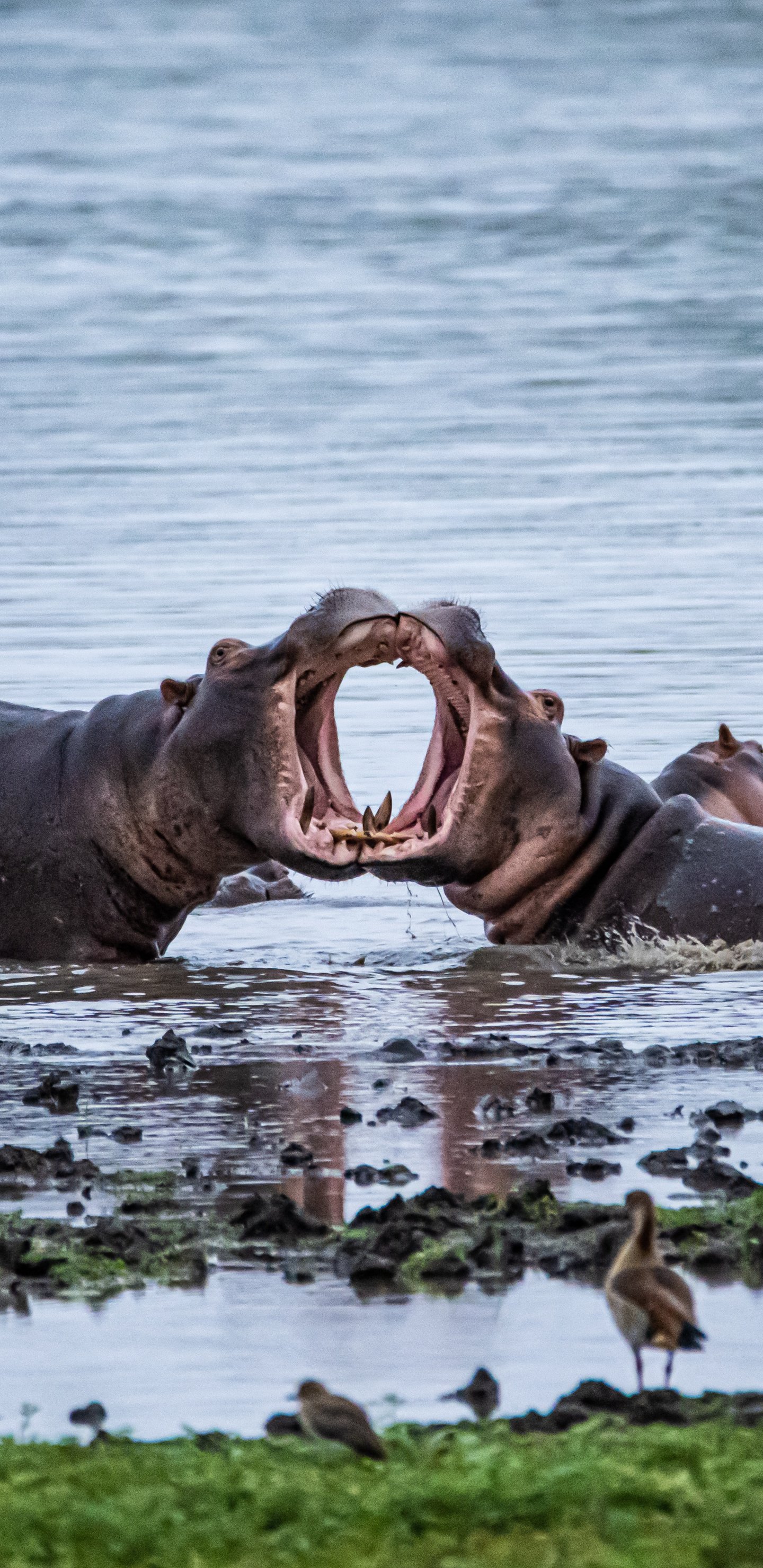 Обои: Зимбабве, бегемоты - 1440x2960