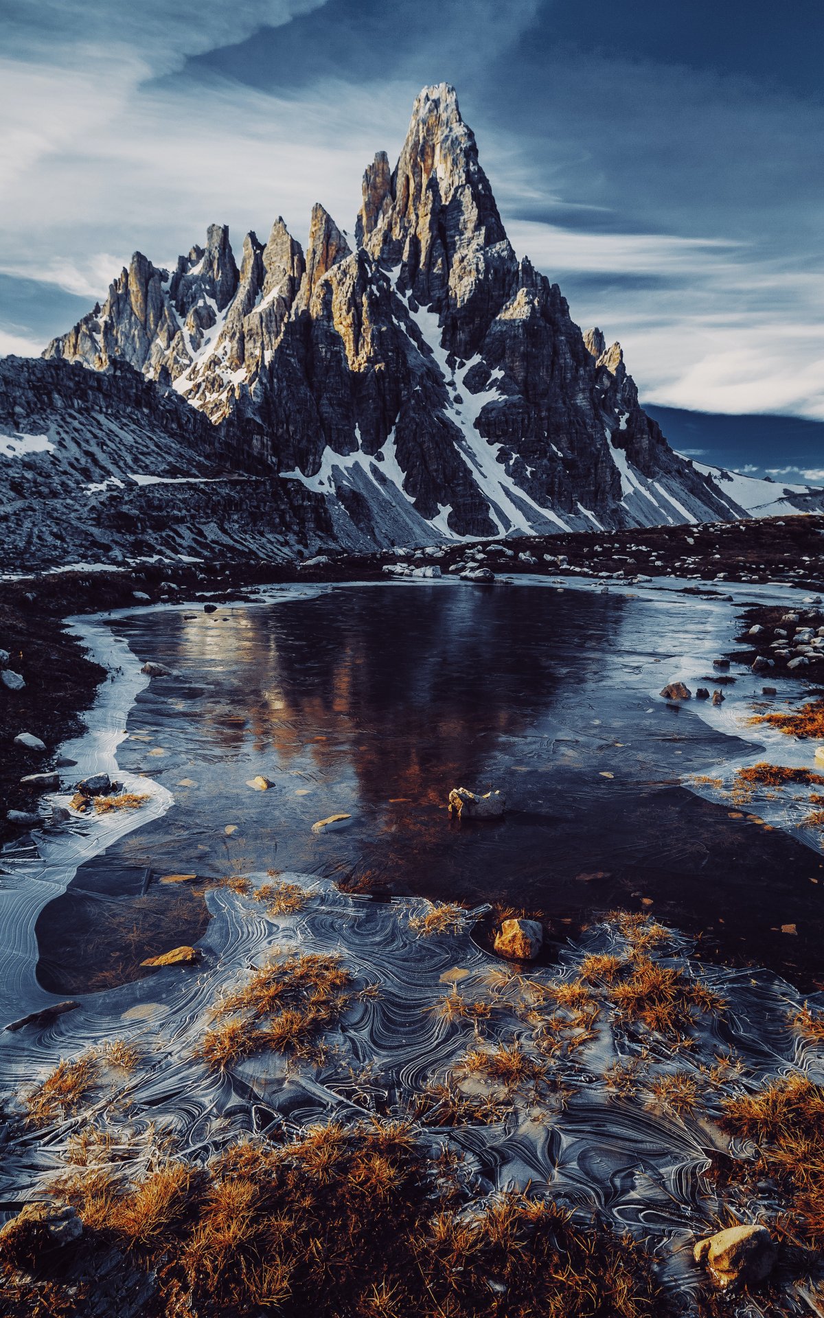 Обои: вершины горы, горная речка - 1200x1920