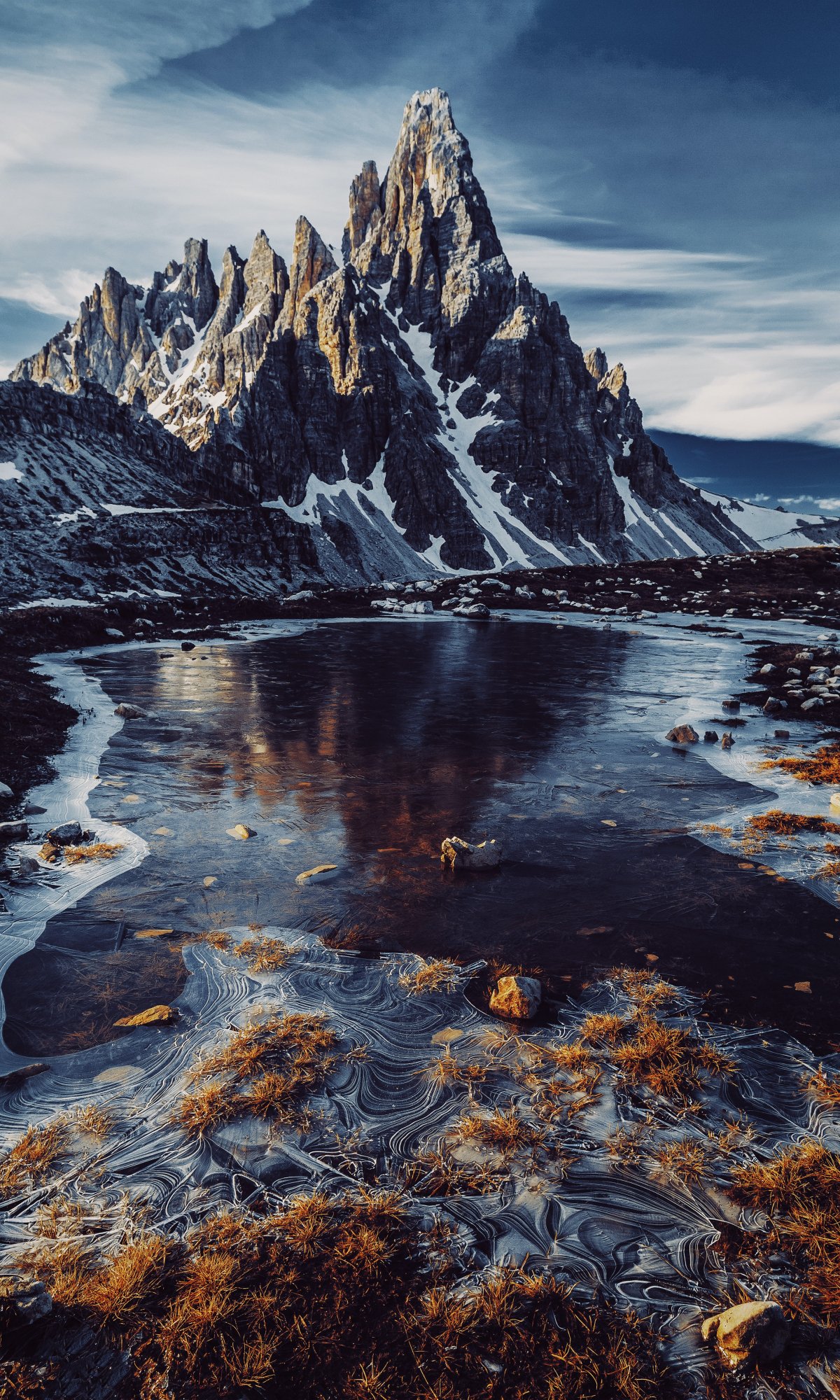 Обои: вершины горы, горная речка - 1200x2000