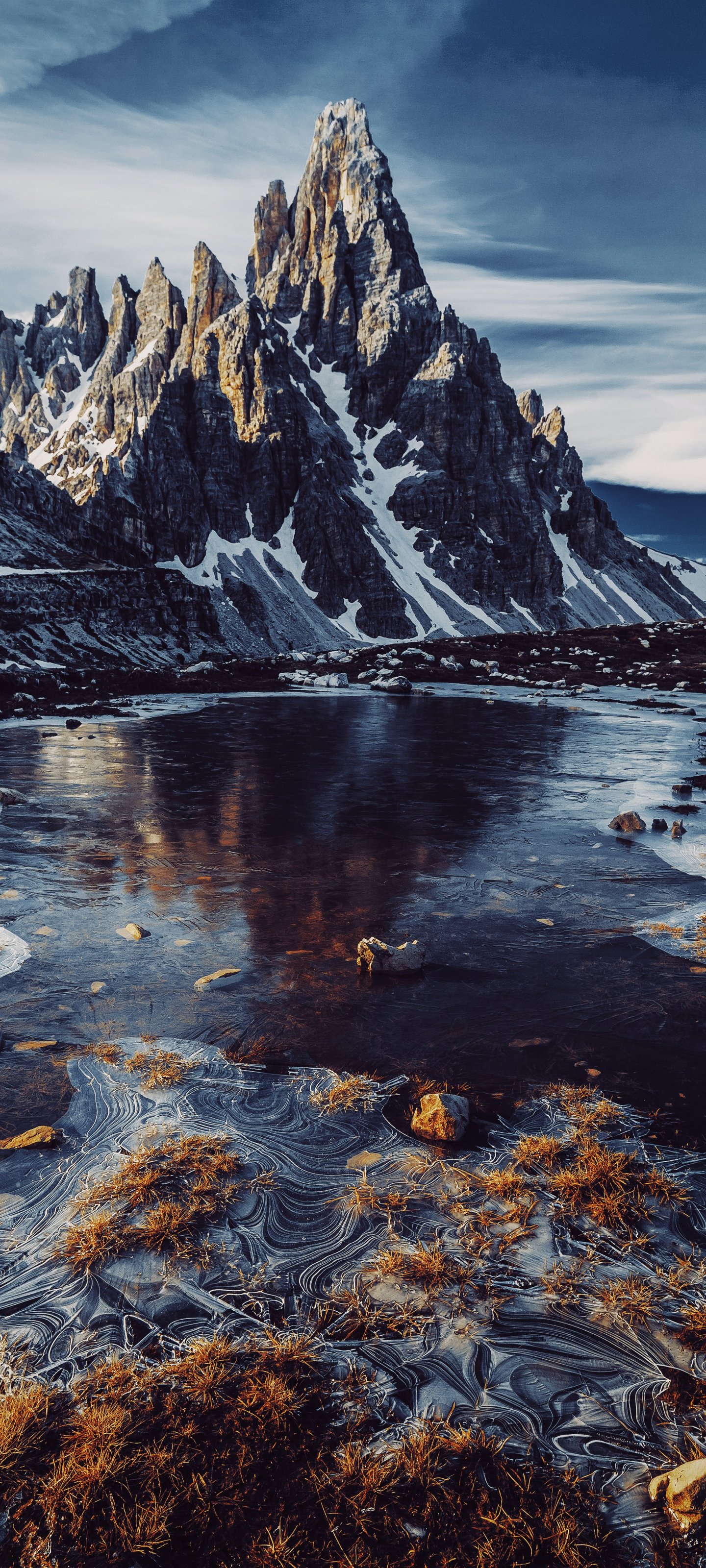 Обои: вершины горы, горная речка - 1440x3200