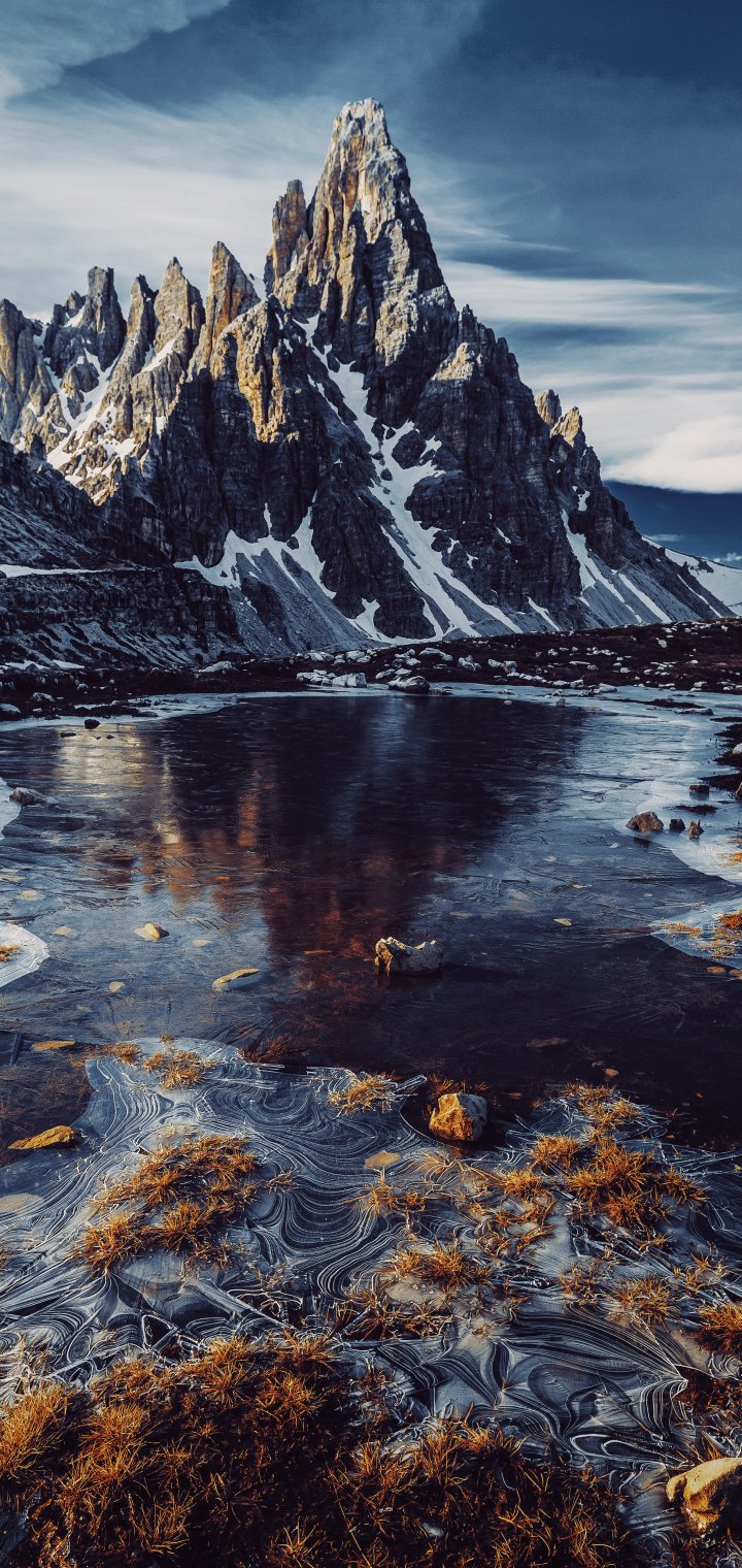 Обои: вершины горы, горная речка - 720x1520