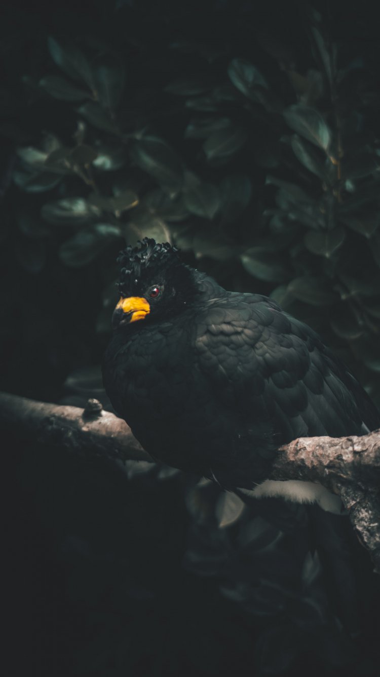Обои: черная птица, желтый клюв - 750x1334
