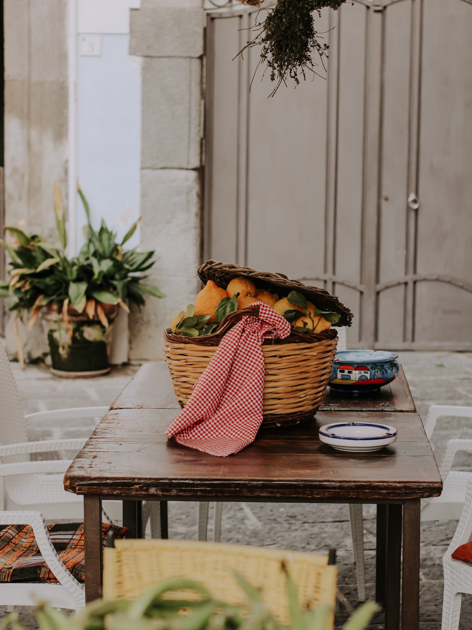 Обои: во дворе, корзина с лимонами - 1536x2048