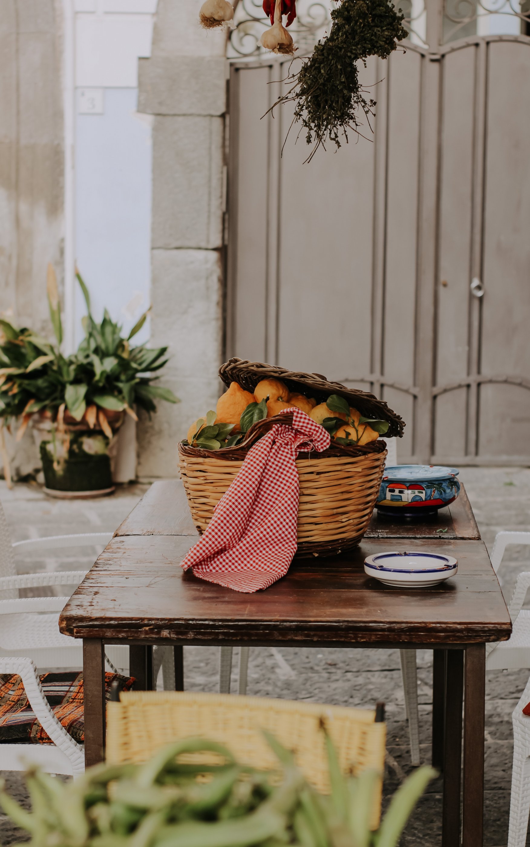 Обои: во дворе, корзина с лимонами - 1752x2800