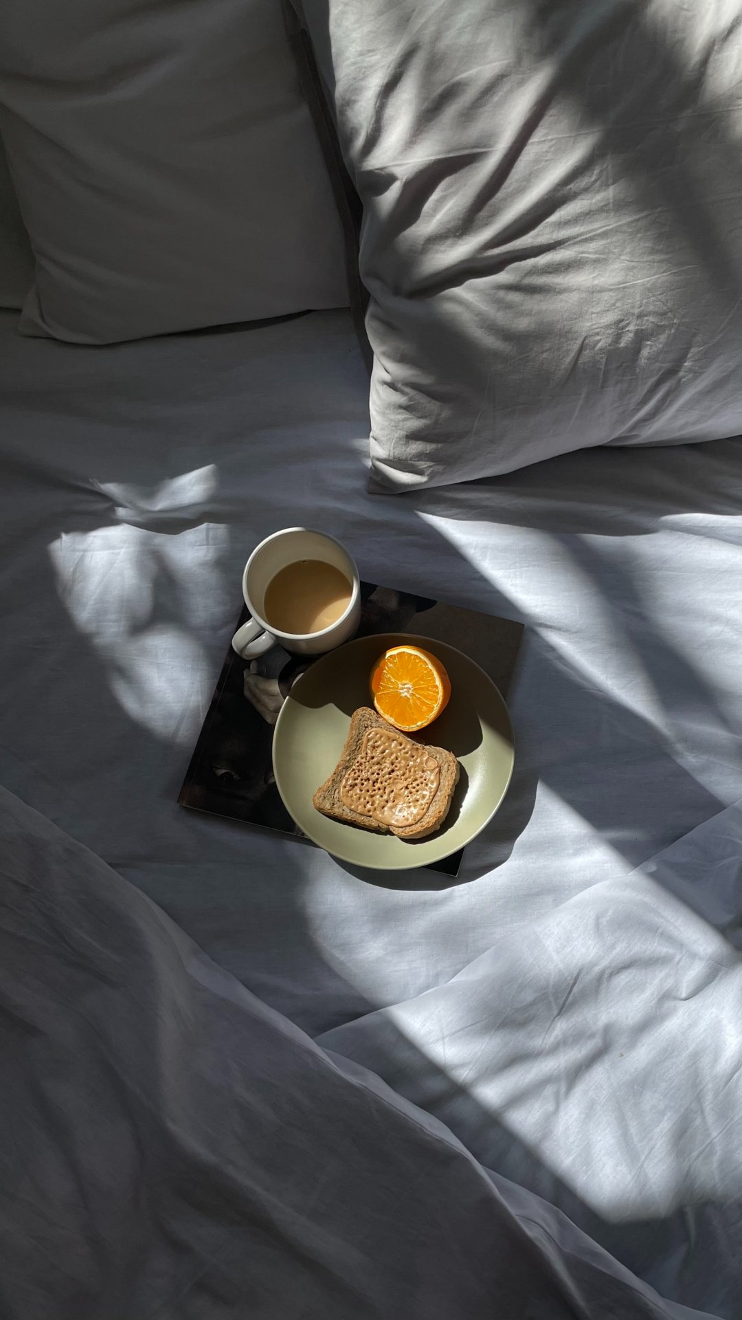 Обои: белые простыни, завтрак - 1080x1920