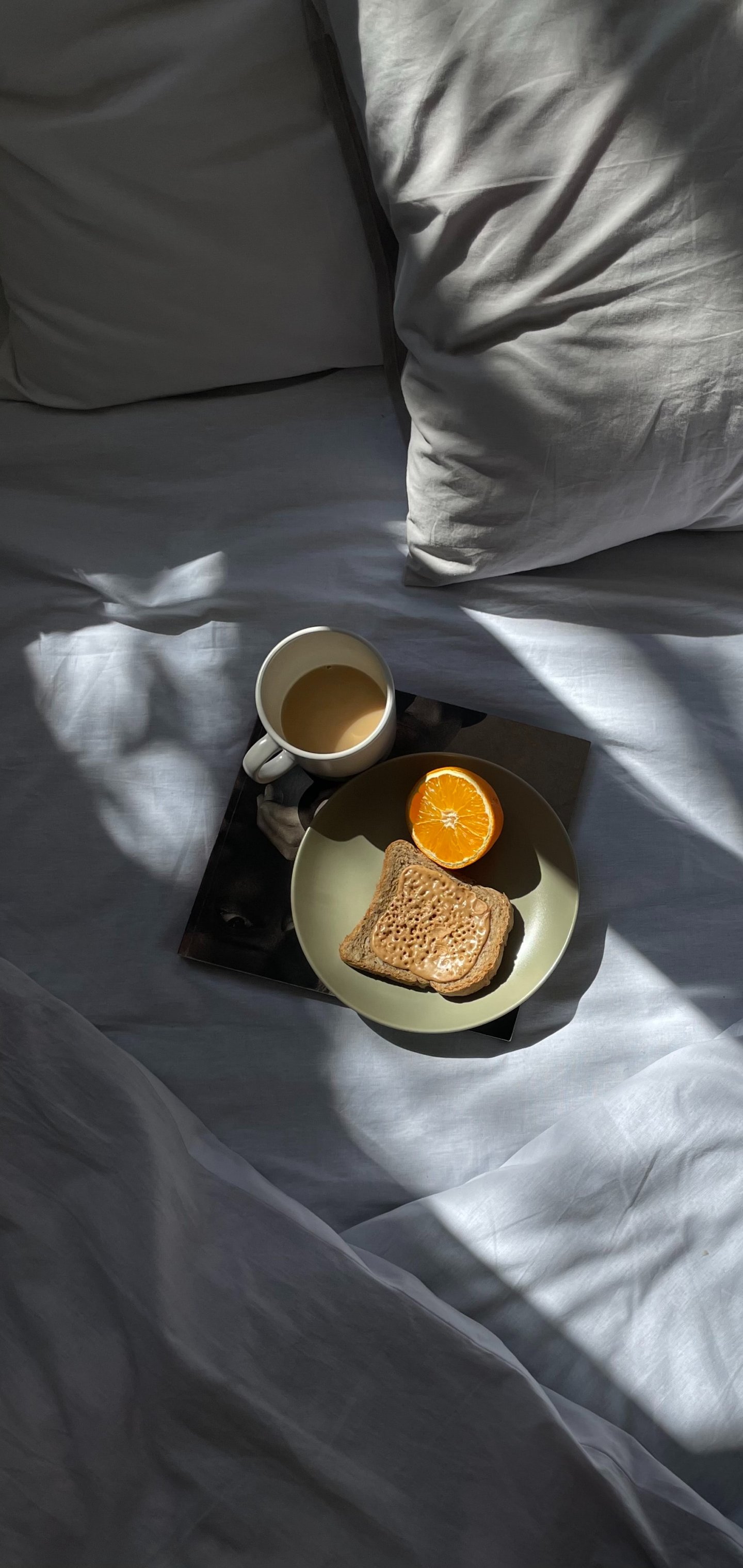 Обои: белые простыни, завтрак - 1440x3040
