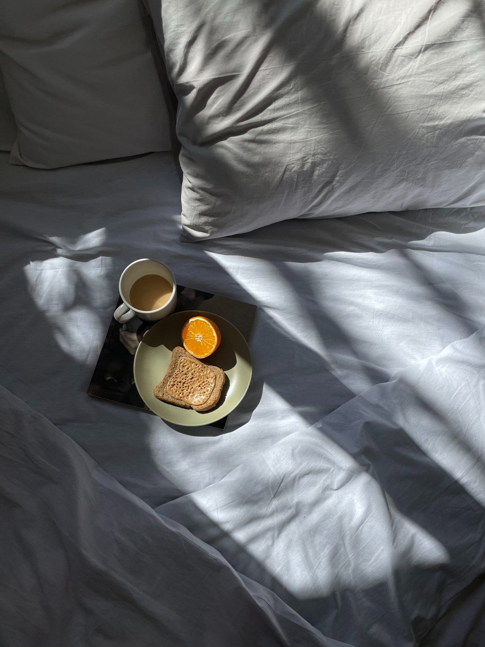 Обои: белые простыни, завтрак - 1668x2224