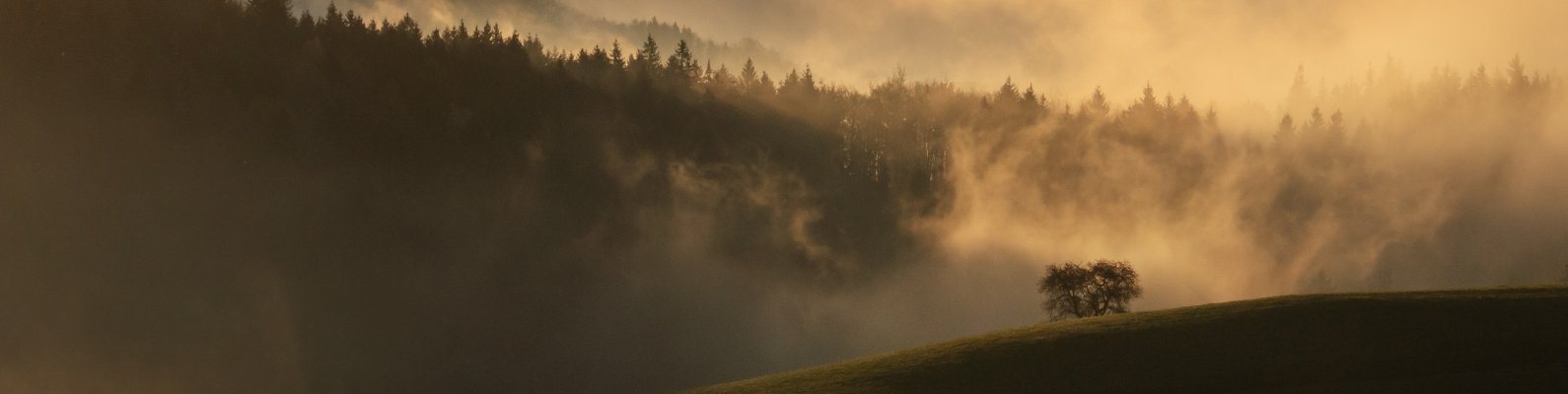 Обои: рассвет, долина, туман - 1590x400