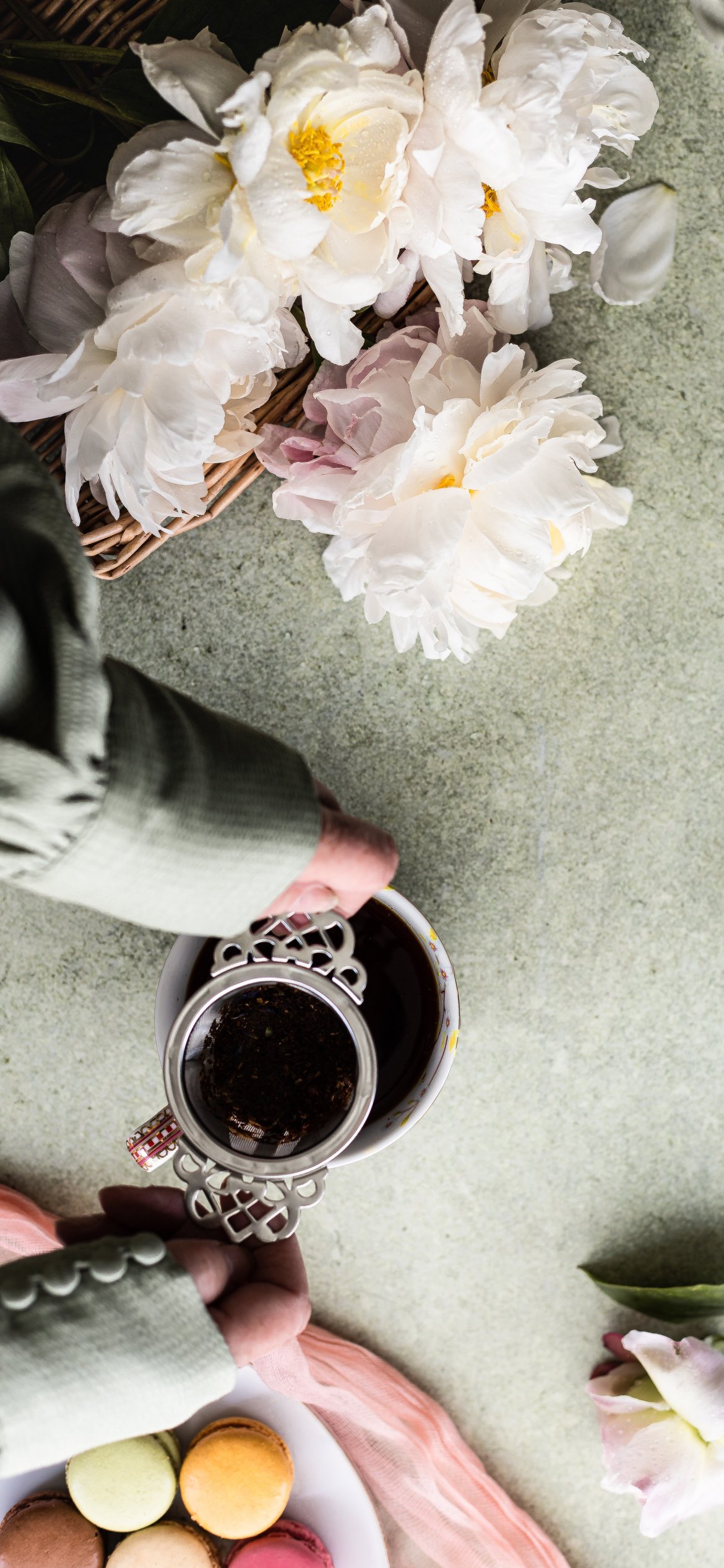 Обои: цветы, кружка кофе - 1170x2532
