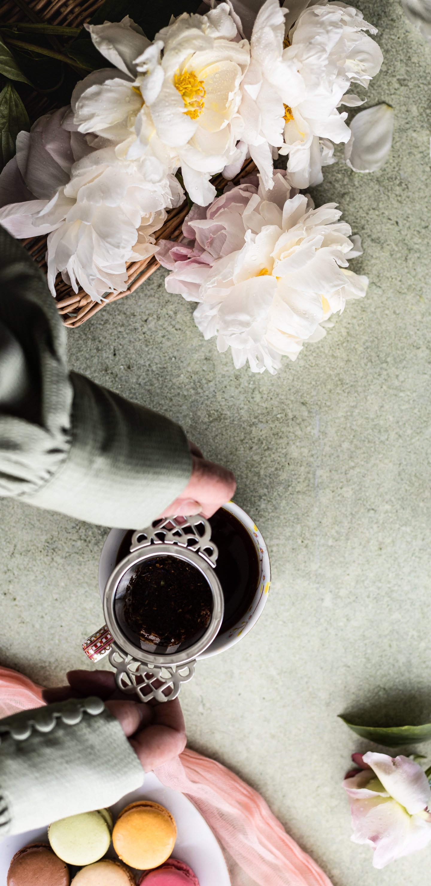 Обои: цветы, кружка кофе - 1440x2960