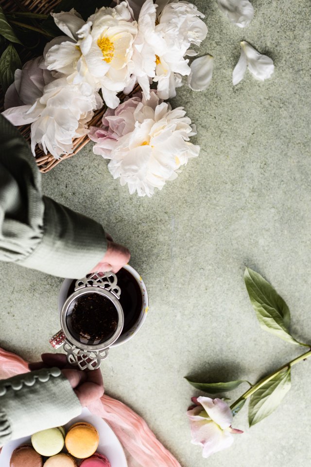 Обои: цветы, кружка кофе - 640x960