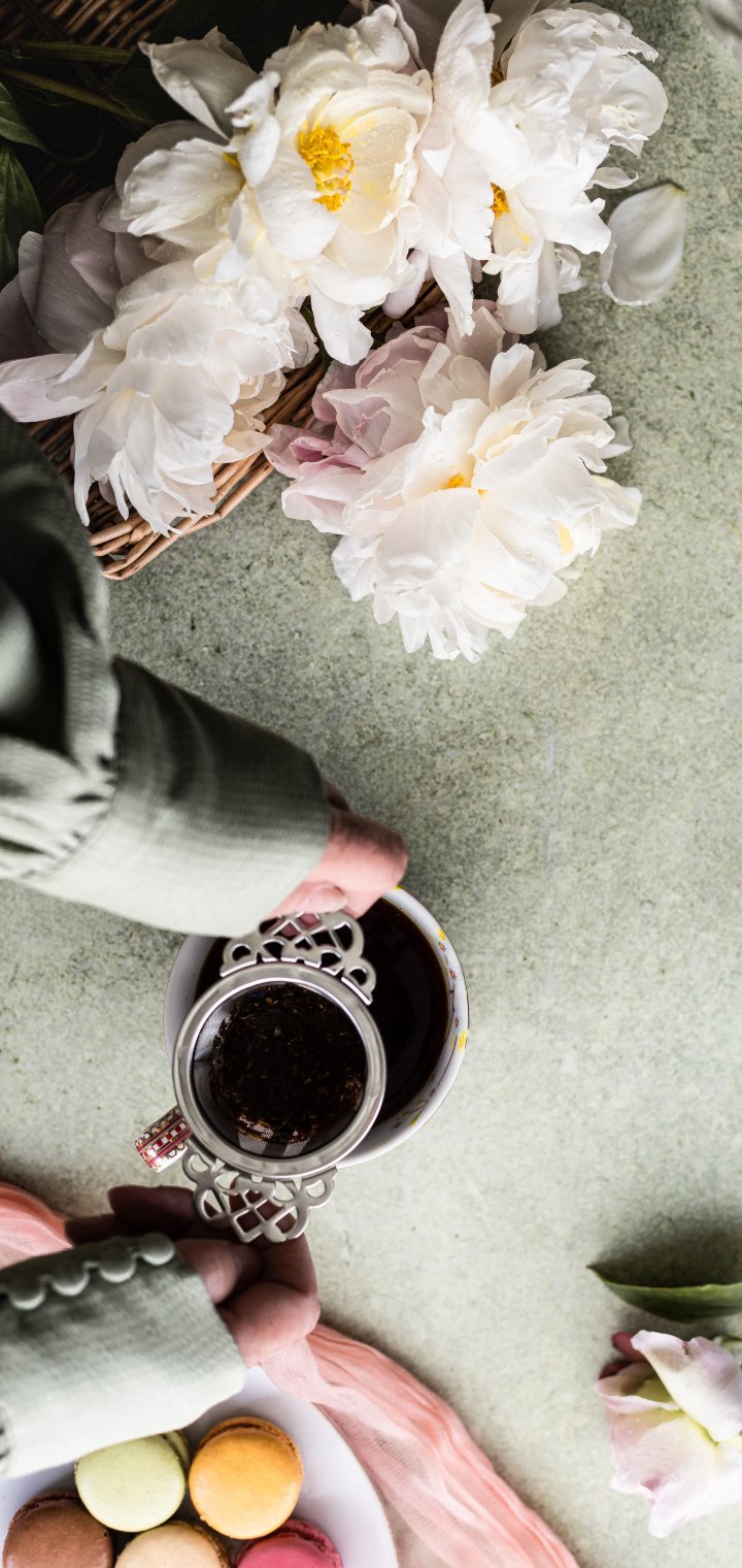Обои: цветы, кружка кофе - 720x1520