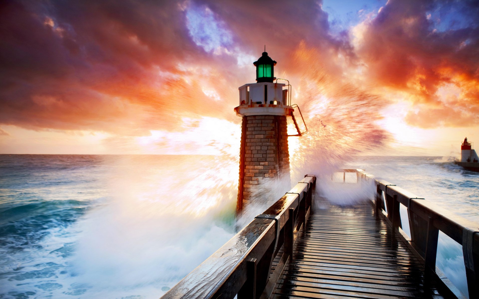 Обои: маяк, океан, волны - 1920x1200